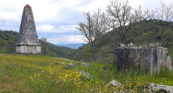 Σε έναν λοφίσκο πάνω από την κοιλάδα του Νέστου, εκεί όπου η ορεινή Δράμα απλώνεται κατάφυτη, με μια παρθένα φυσική ομορφιά που εντυπωσιάζει τον επισκέπτη, ένα πέτρινο μνημείο στέκει σιωπηλό.